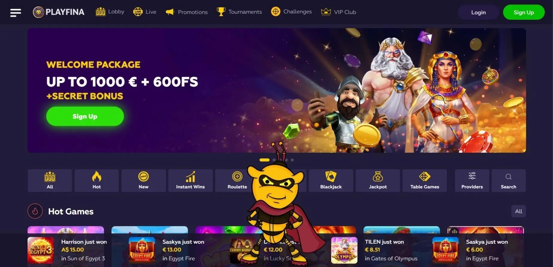 More than 11,000 slots, all varieties of blackjack, dozens of roulette games, craps, video poker, and other games are available to you at Playfina casino online Discover the Advantages of Playfina Casino Login, Enhancing the Gaming Experience for Players! Play the Best Online Casino Games at Playfina ✓ Try Slots, Blackjack, Roulette, Craps and Video Poker with Huge Bonuses. Playfina Casino How to Start Up to 1000€ + 200 FS + Secret Bonus... Playfina Casino - Bonus Codes – 50 Free Spins!